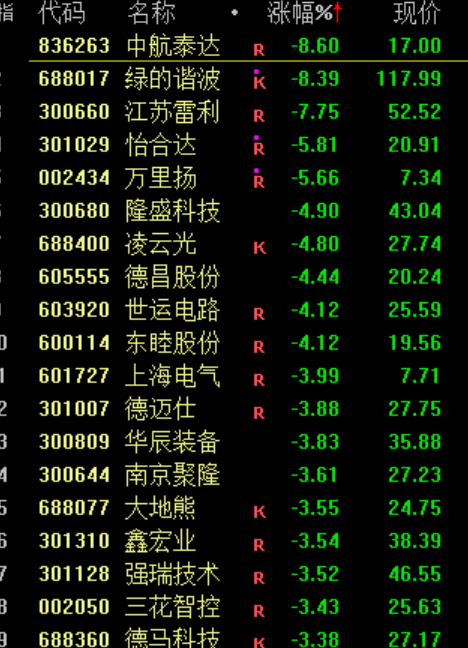 下跌方面,机器人概念股迎来调整,绿的谐波跌超8%。